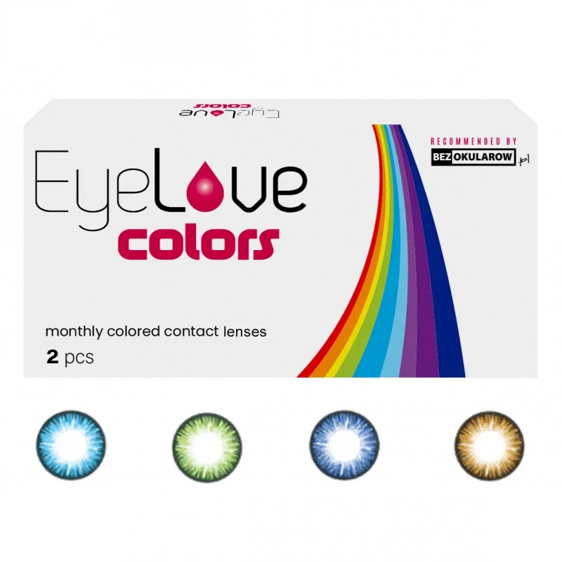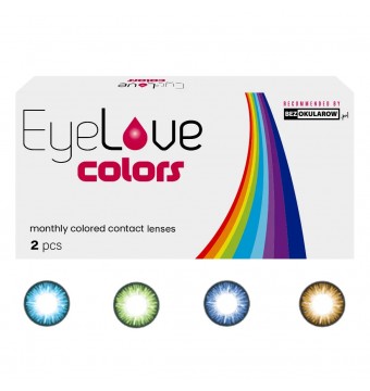 EyeLove Colors to miesięczne soczewki kontaktowe, które pozwalają subtelnie podkreślić lub całkowicie zmienić barwę tęczówki. Wykonane z miękkiego materiału hydrożelowego, gwarantują komfort, elastyczność i dobre dopasowanie do oka, dzięki wysokiemu poziomowi uwodnienia. Soczewki dostępne są w mocach minusowych od -0,5 D do -6,0 D, a dla osób szukających kolorowych soczewek zerówek przygotowano osobną ofertę EyeLove Colors 0,00 D.